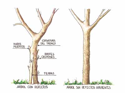 - Realizar intervenciones precoces con el fin de mantener constantes las condiciones de crecimiento (anillos homogéneos y verticalidad del tronco).