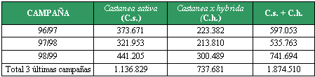 Con respecto al total de planta usada en repoblación, el castaño supone alrededor del 2%. Sin duda se trata de una cifra baja, habida cuenta de las grandes posibilidades que tiene esta especie.