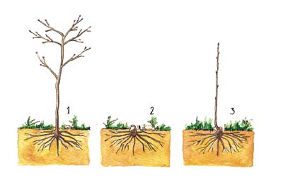 También es recomendable el corte a ras del suelo de plantas dañadas por la helada o el mordisqueo de animales. Siempre que la planta tenga un sistema radical desarrollado, se producirá un rebrote vigoroso, que exigirá que en verano o, como muy tarde antes del comienzo de la actividad vegetativa en la primavera próxima, se haga una selección de brotes dejando el más adecuado por cada cepa de planta cortada.