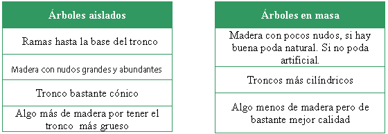 - Madera homogénea, por el crecimiento regular y sostenido.