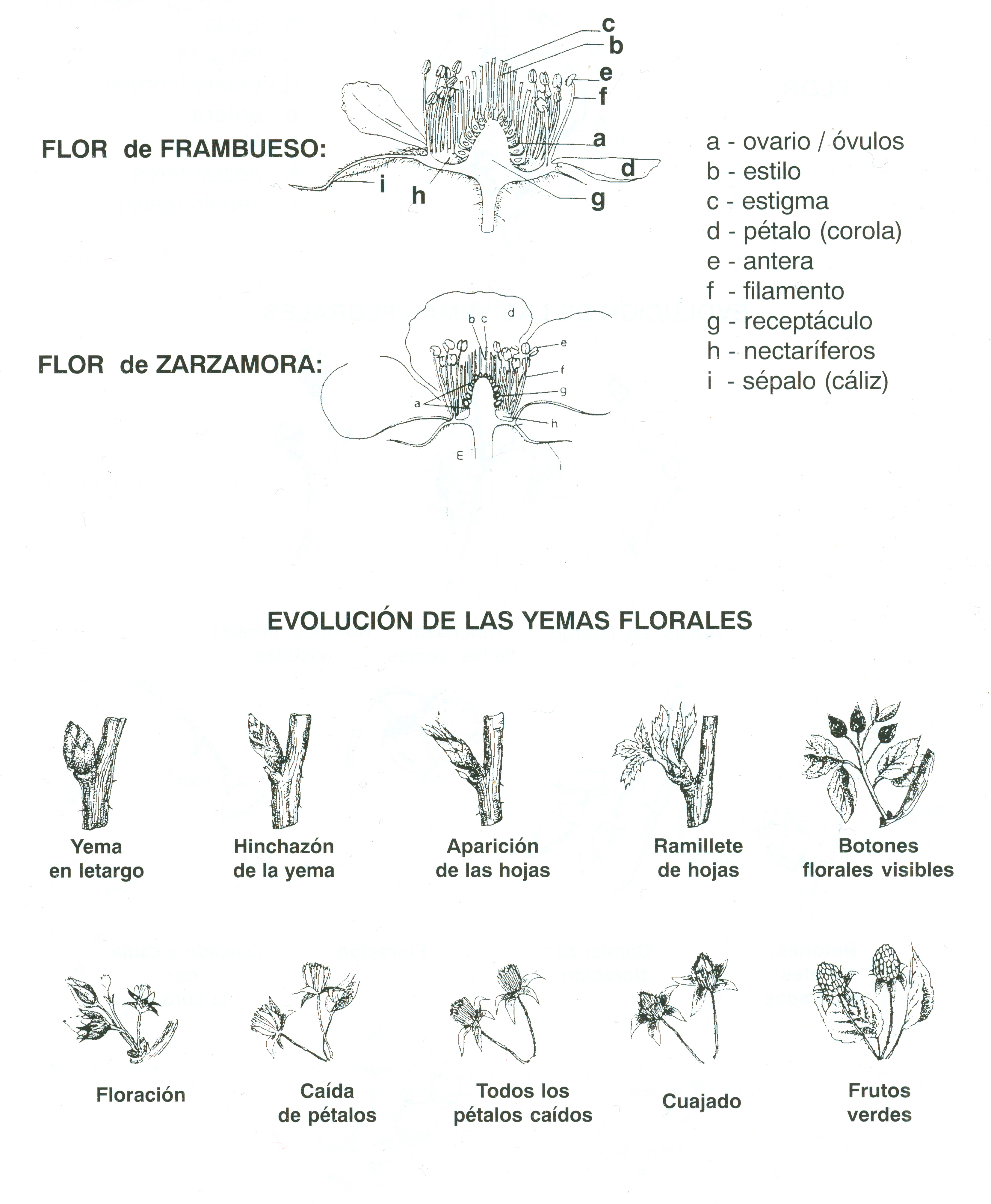 FRAMBUESO Y ZARZAMORA EVOLUCION DE LAS YEMAS FLORALES