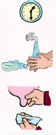 - As mans deben limparse con xabón e auga e secarse.