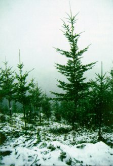 Foto nº 8. Parcela de ensayo de procedencias en Ataun (Guipúzcoa). Se aprecia diferencias importantes de porte y crecimiento de unas procedencias a otras.