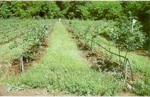Mantenimiento del suelo: Mulching en las filas de zarzamora, arándano y grosellero y vegetación natural en las calles